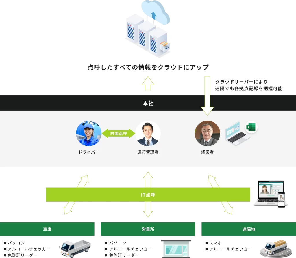 営業所と車庫が離れている営業所では、ドライバーの点呼のたびに点呼実施者が車庫まで行ったり、車庫常駐の管理者を置くべきか悩んでいる企業も多いのではないでしょうか。