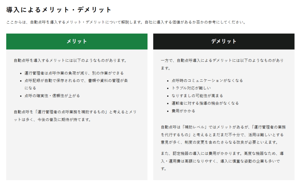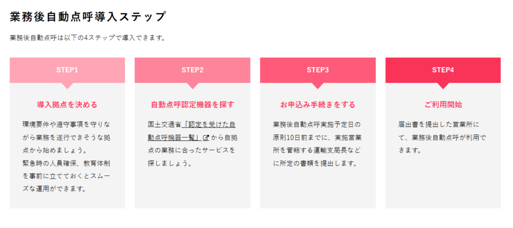 業務後自動点呼を導入する道路運送事業者は、以下の2点が可能か確認しましょう。