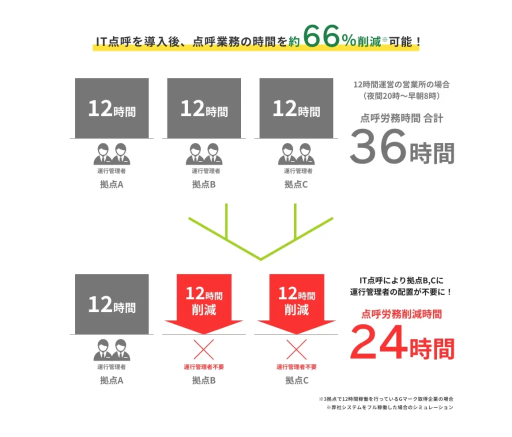 深夜・早朝・休日の点呼効率化による業務工数削減