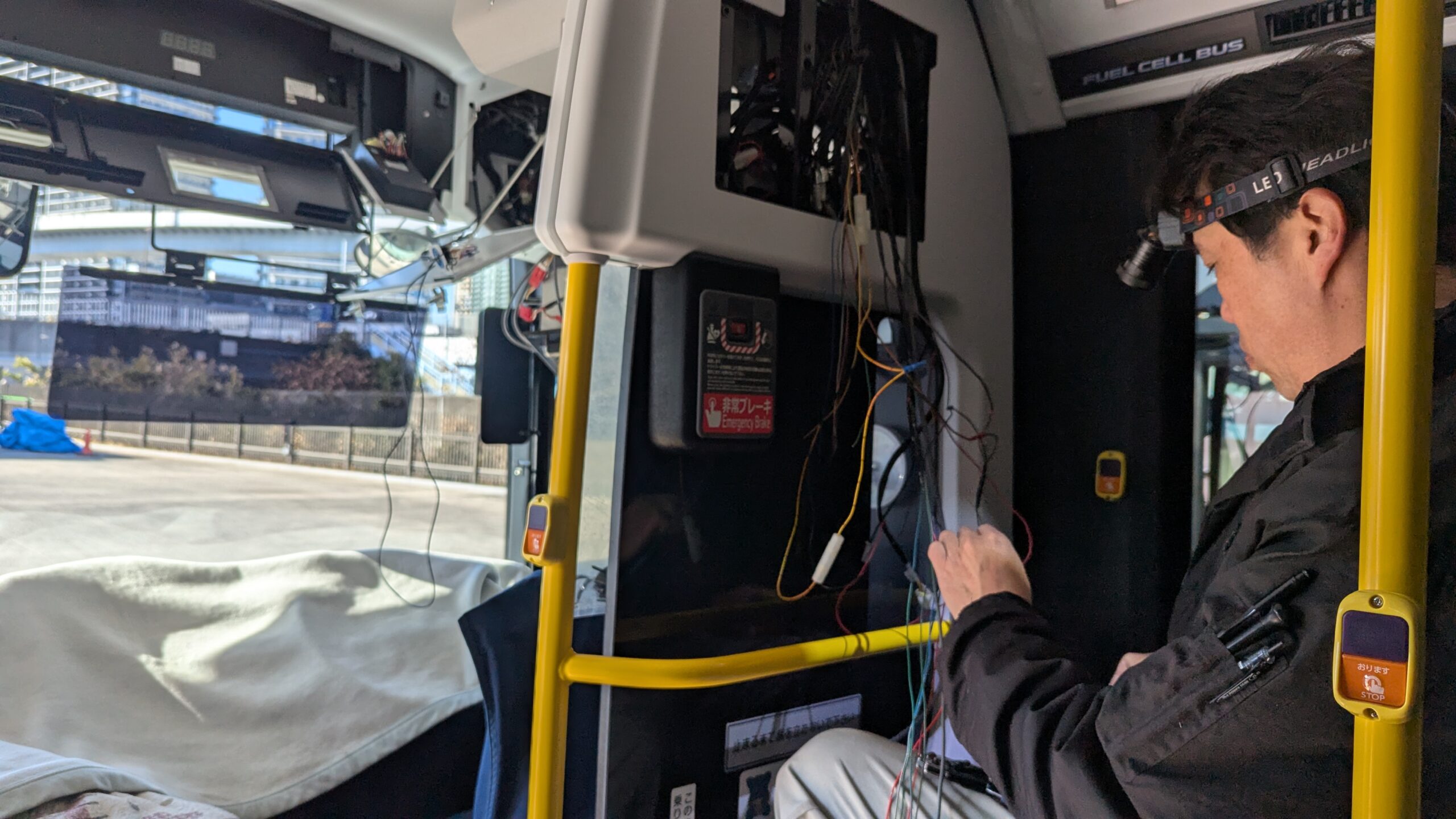 バスに搭載されている安全・セキュリティーを監視するドライブレコーダーや、通信機器などの計装機器の取り付け、センター設備の管理・補修・運用サポートを行っています。